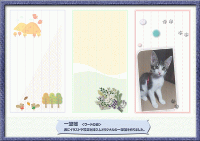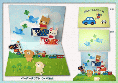 ペーパークラフト <ワード> YIさん ダウンロードしたイラストを使用し、A5サイズのカードを作成 |
